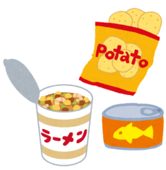 スナック菓子、即席めん類、缶詰など品質の劣化が比較的穏やかな食品
