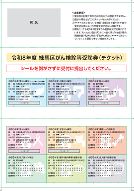 がん検診等の受診には【受診券(チケット)】が必要です。(上記見本参照)