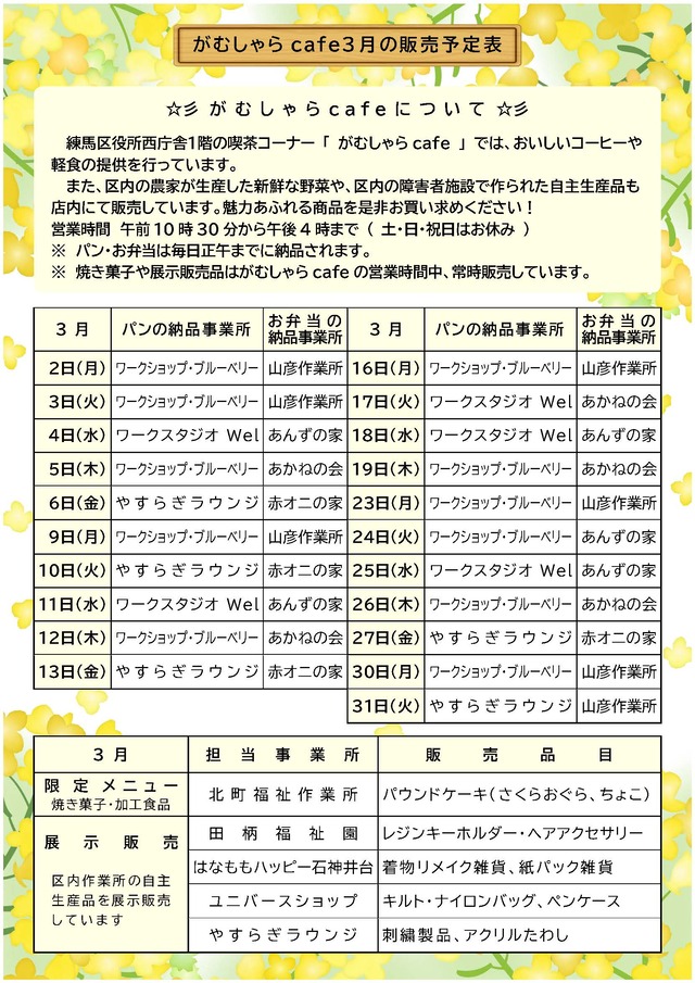 がむしゃらcafe令和8年3月の販売予定表(PDF:575KB)