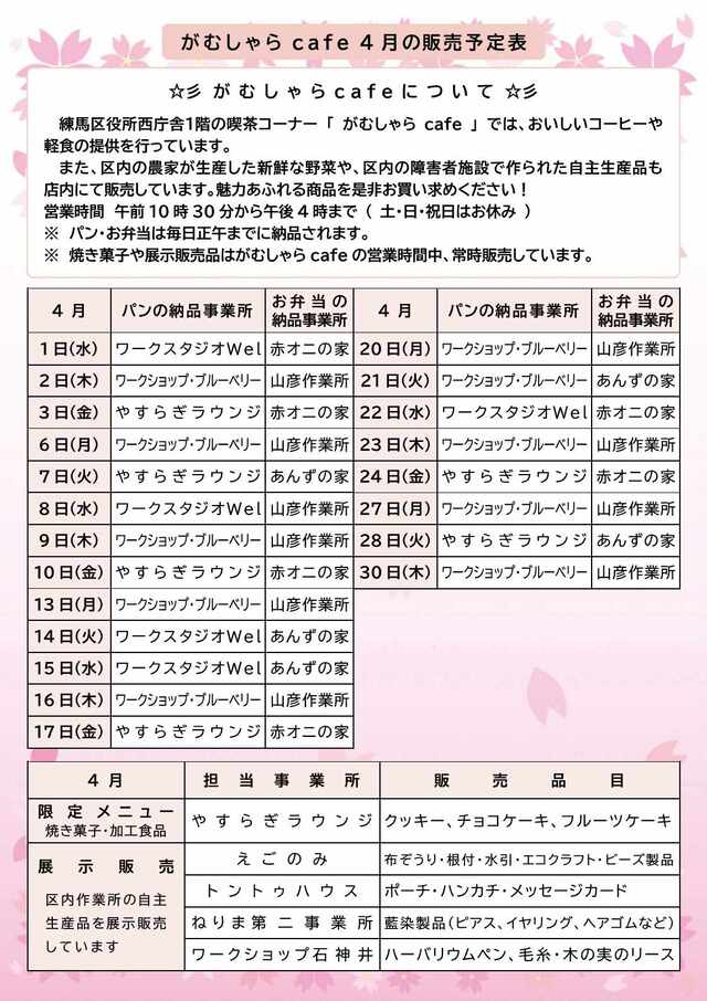 がむしゃらcafe令和8年4月の販売予定表(PDF:132KB)