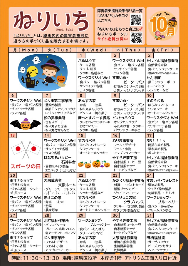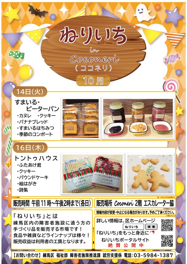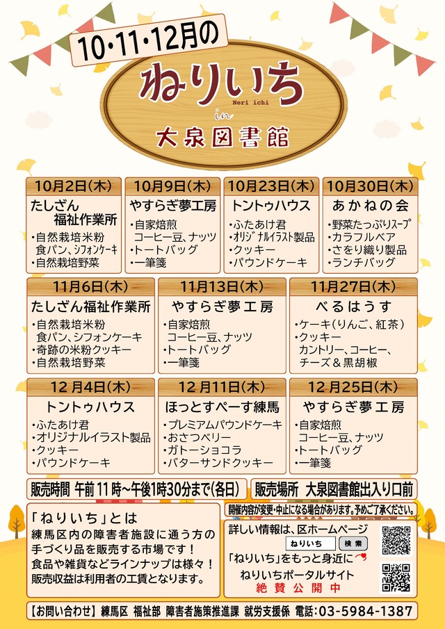 障害者による手づくり品販売市場「ねりいち」販売予定(令和7年10月)