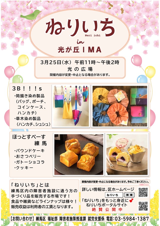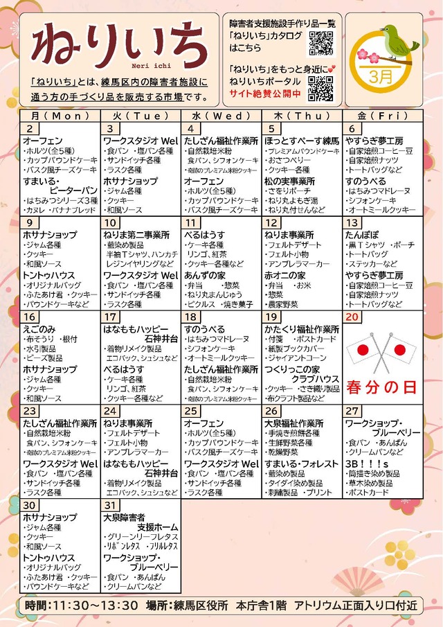 障害者による手づくり品販売市場「ねりいち」販売予定(令和8年2月・3月)