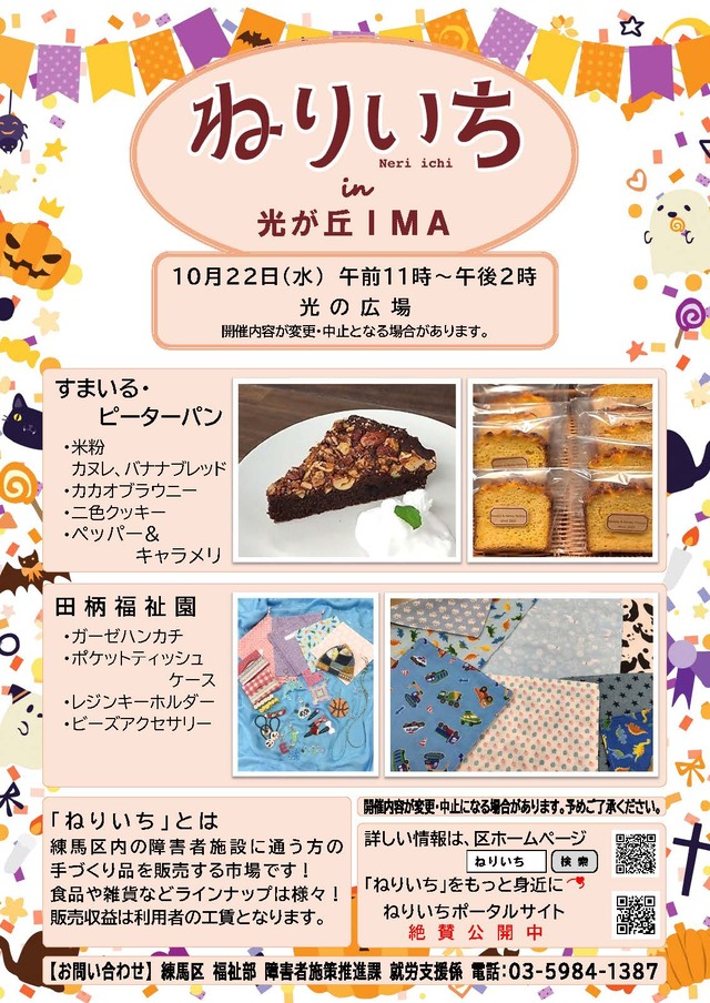 - 障害者による手づくり品販売市場「ねりいち」販売予定(令和7年10月)