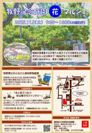 牧野記念庭園では、令和7年11月8日(土)に庭園内にて花マルシェを開催いたします。