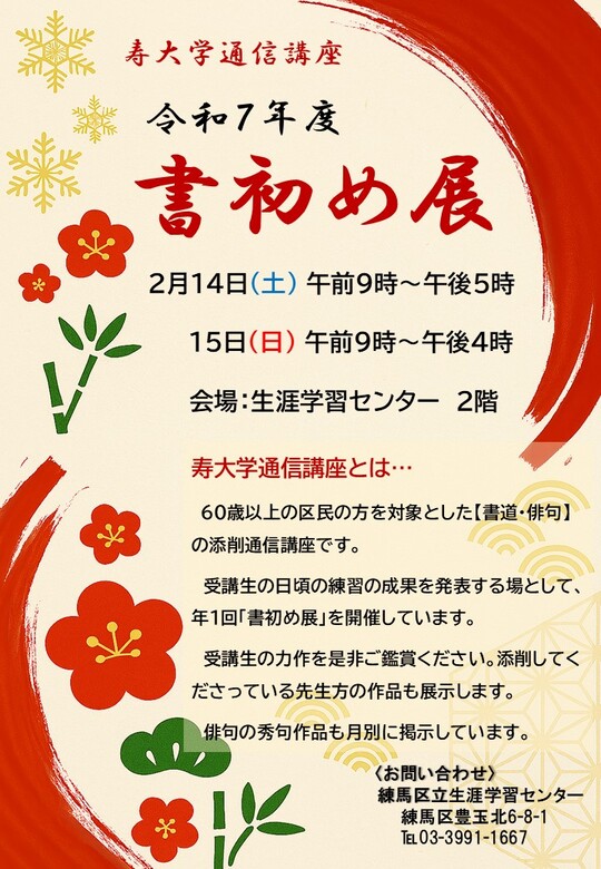 書道受講者による書初め展(俳句講座の秀句の展示を含む)も、毎年2月に実施しています。