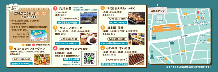 当日配布パンフレットを練馬駅周辺のお店に持っていくと、うれしいサービスが受けられます!