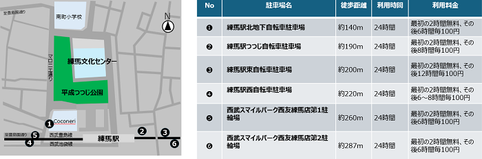 (注釈)練馬文化センターおよびCoconeriの駐輪場はご利用いただけませんのでご注意ください。
