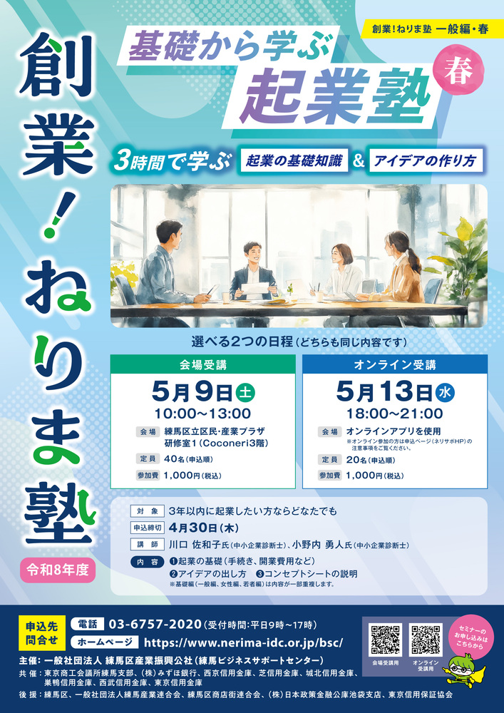 【参加者募集】 創業!ねりま塾 一般編・春「基礎から学ぶ起業塾」