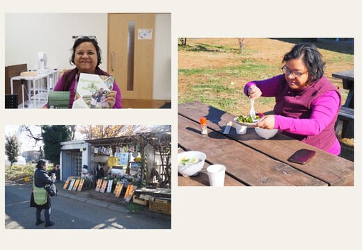 都市農地が持つコミュニティ機能やジャイータ・シャルマ氏の研究分野(都市と食べ物、持続可能な食と農業の取り組み)について情報交換を行いました。その後、庭先直売所の見学や農の学校で栽培した江戸東京野菜を試食してもらうなど、交流を深めました。
