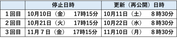 メンテナンス期間中は回答フォームへのアクセスなどができなくなりますので、ご了承ください。