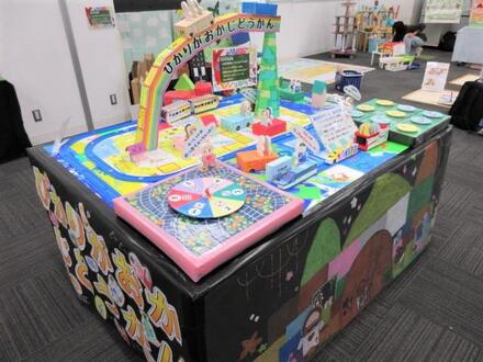 光が丘児童館「ひかりがおかトイ★トイワールド」電車のおもちゃや人生ゲームなど、児童館のおもちゃがおおきくなっちゃった?!巨大ルーレットや絵合わせゲームはさわって遊べるようにしました♪