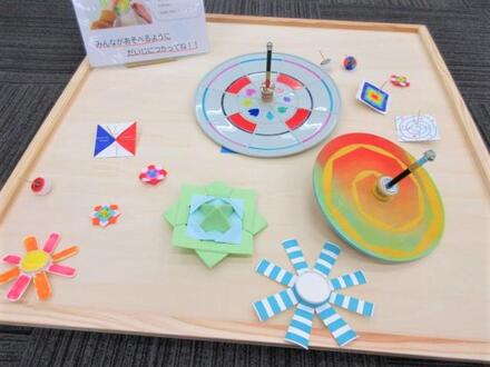 三原台児童館「こまこまこまこま」いろいろな素材、大きさ、回し方のこまを子どもたちとたくさん作りました。大きなこまは回ると迫力満点です!