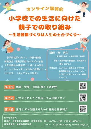 講演会 小学校での生活に向けた親子での取り組み ~生活習慣作りは人生の土台づくり~【YouTube配信】