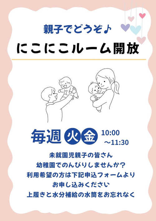 未就園児親子対象のにこにこルーム開放を行います。