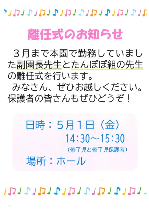 離任式のお知らせ