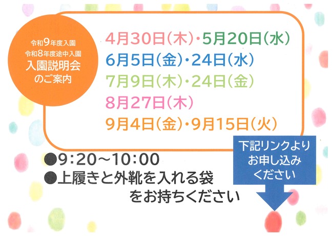 R8入園説明会日程は上記のとおりです