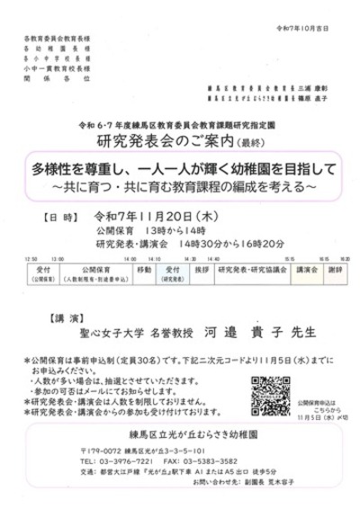 研究発表会のご案内(練馬区教育委員会教育課題研究指定園)