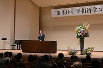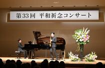 練馬文化センターにて、音楽や戦時体験の講演を通して、平和の大切さや尊さについて考える催しとして、「第33回平和祈念コンサート」を開催しました。講演では、戦時中、現在の練馬区小竹町にお住まいだった西村昭彦さんに、食べ物に苦労された当時の生活や空襲の体験、疎開先での暮らしについて、貴重なお話をしていただきました。コンサートでは、サクソフォン奏者の田中拓也さんと、ピアノ奏者の中野翔太さんの素晴らしい演奏が、来場された皆さまを魅了しました。