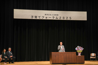 練馬文化センターにて行われた、練馬区私立幼稚園協会「子育てフォーラム2025」に出席しました。日頃から練馬区の幼児教育に御尽力頂いている私立幼稚園の皆さんに、心から感謝を申し上げます。引き続き、多様化する子育てサービスのニーズに応えて、誰もが安心して生活できる環境を整え、子育てのかたちを選択できる社会を実現したいと考えています。