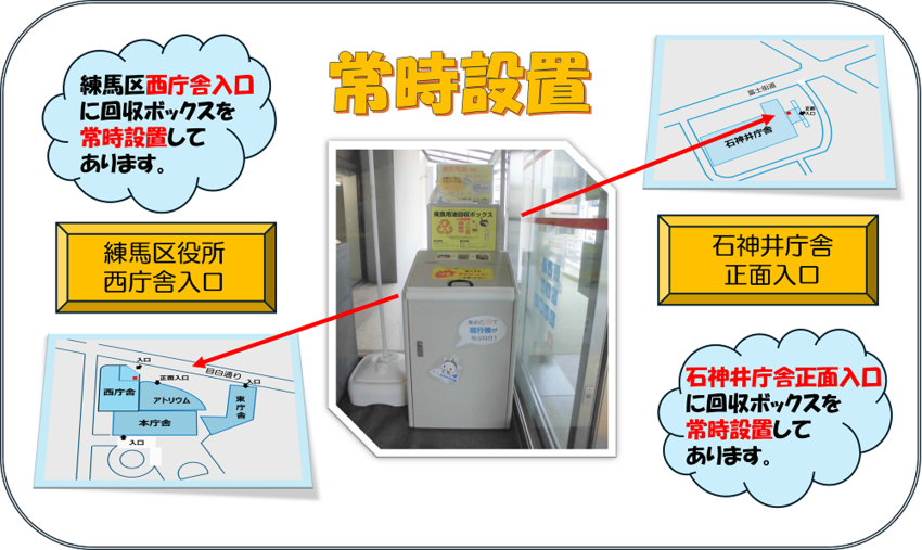 都は持続可能な航空燃料(SAF)の普及に向けたキャンペーンを展開しています。これに合わせ、練馬区では回収ボックスを常設し、ご家庭の使用済み食用油の回収を行っています。