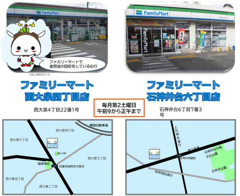 練馬区内2か所のファミリーマートで油の回収をしています