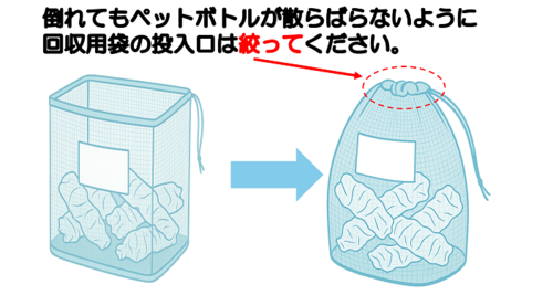 - 午前9時以降、回収用コンテナ・袋ごと回収します。午前9時までに回収用コンテナ・袋に直接入れてください(ビニール袋等は持ち帰ってください)。