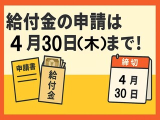 令和7年度第2回物価高騰対策給付金の申請期限は、令和8年4月30日(木)(消印有効)までとなっております。