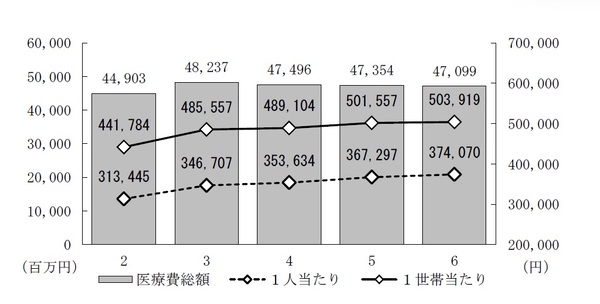 生活習慣病の増加や加入者の高齢化、医療技術の進歩・高度化などにより、練馬区国保一人あたりの医療費は年々増加しています。