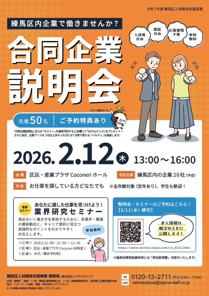 練馬区内企業が出展する「合同企業説明会」を開催します。