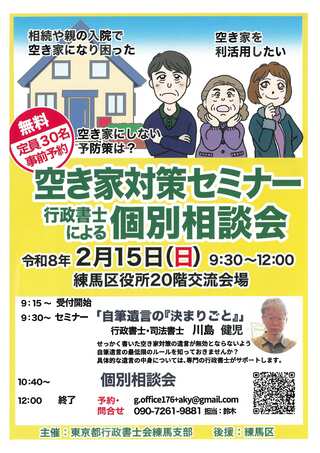 - 空き家対策セミナー・行政書士による個別相談会を開催します!(無料)【練馬区後援】