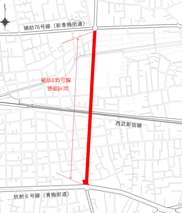 | 都市計画道路事業名称 | 東京都市計画道路事業幹線街路補助線街路第135号線 |