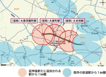 このうち、練馬区内では、(仮称)土支田駅、(仮称)大泉町駅、(仮称)大泉学園町駅の3つの新駅を整備する予定です。
